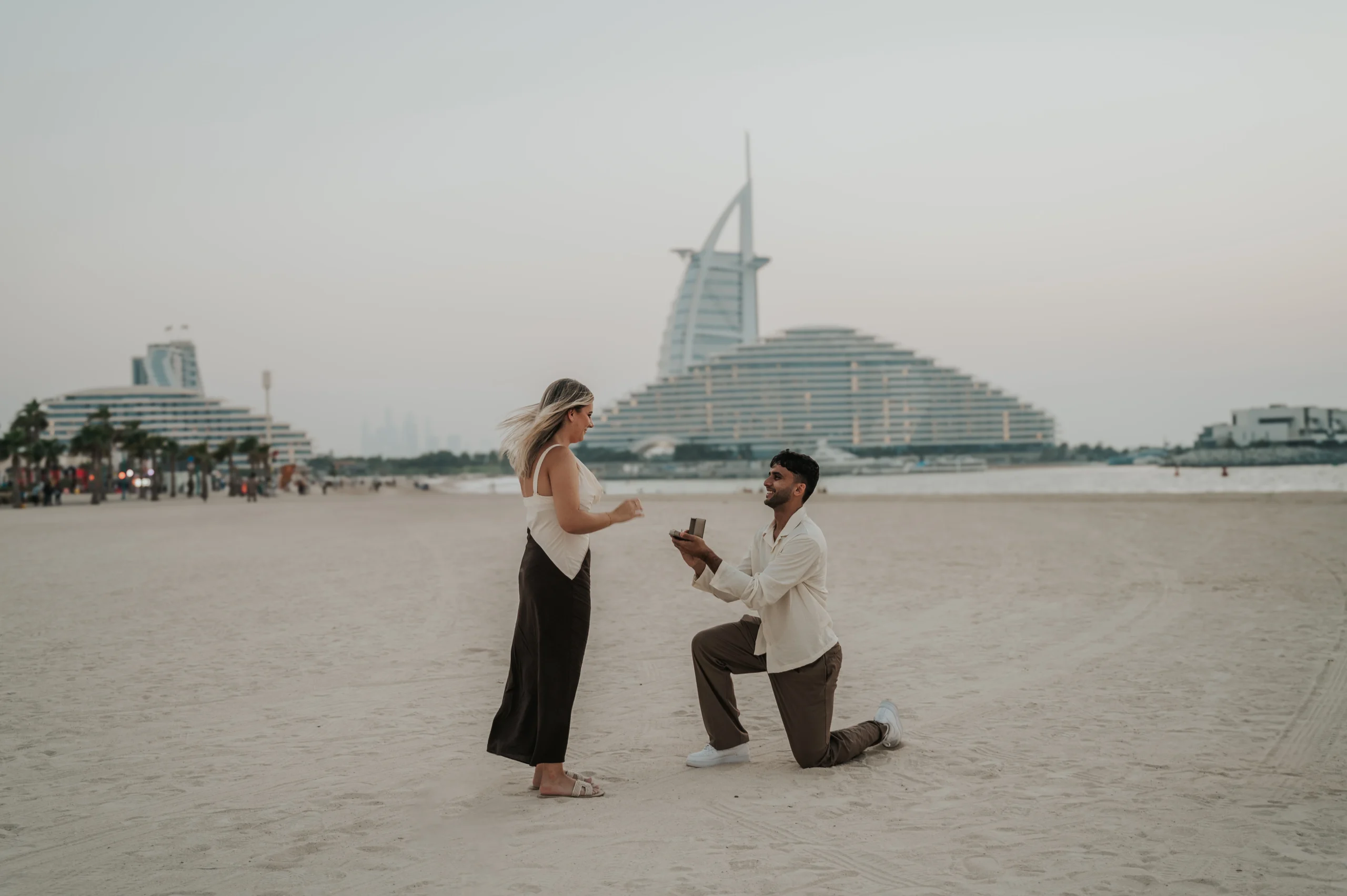 I have photographed proposals all over Dubai and can recommend the perfect setting based on the atmosphere you want, whether that is romantic, dramatic, intimate, or luxurious.